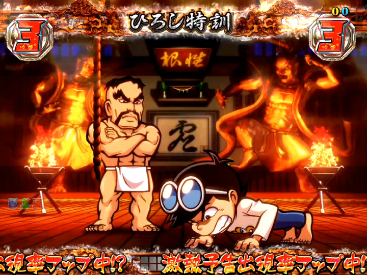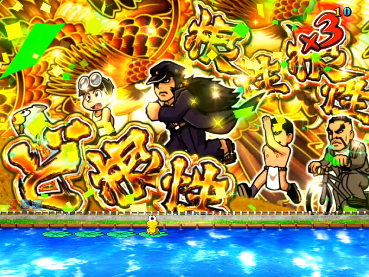 通常時は、ひろしを初めとした「ど根性ガエル」のキャラクターがメインですが、期待度が上がるにつれて「押忍!番長」シリーズに登場するキャラクターたちが姿を現します。